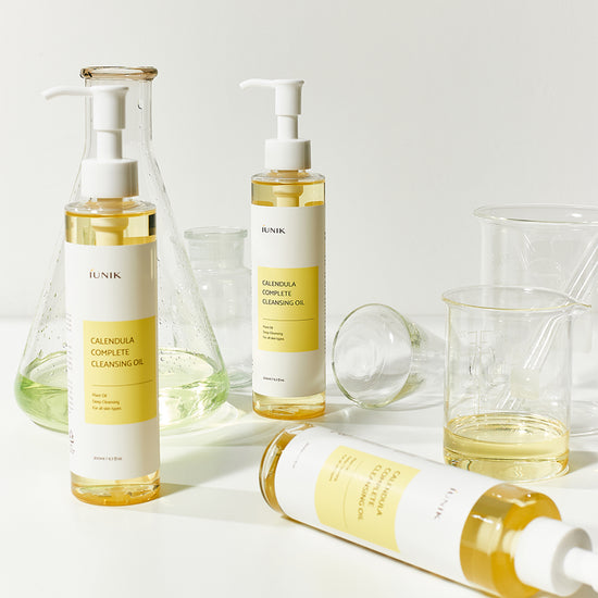 Start with the Calendula Complete Cleansing Oil on dry skin. Gently massage in circular motions to dissolve makeup, sunscreen, and impurities. Add a small amount of water to emulsify into a milky texture, then rinse thoroughly with lukewarm water. Follow with the Calendula Balancing Foam Gel Cleanser, lathering a small amount with water to create foam. Massage gently over the face and rinse well to remove any remaining residue for a refreshed, hydrated finish.