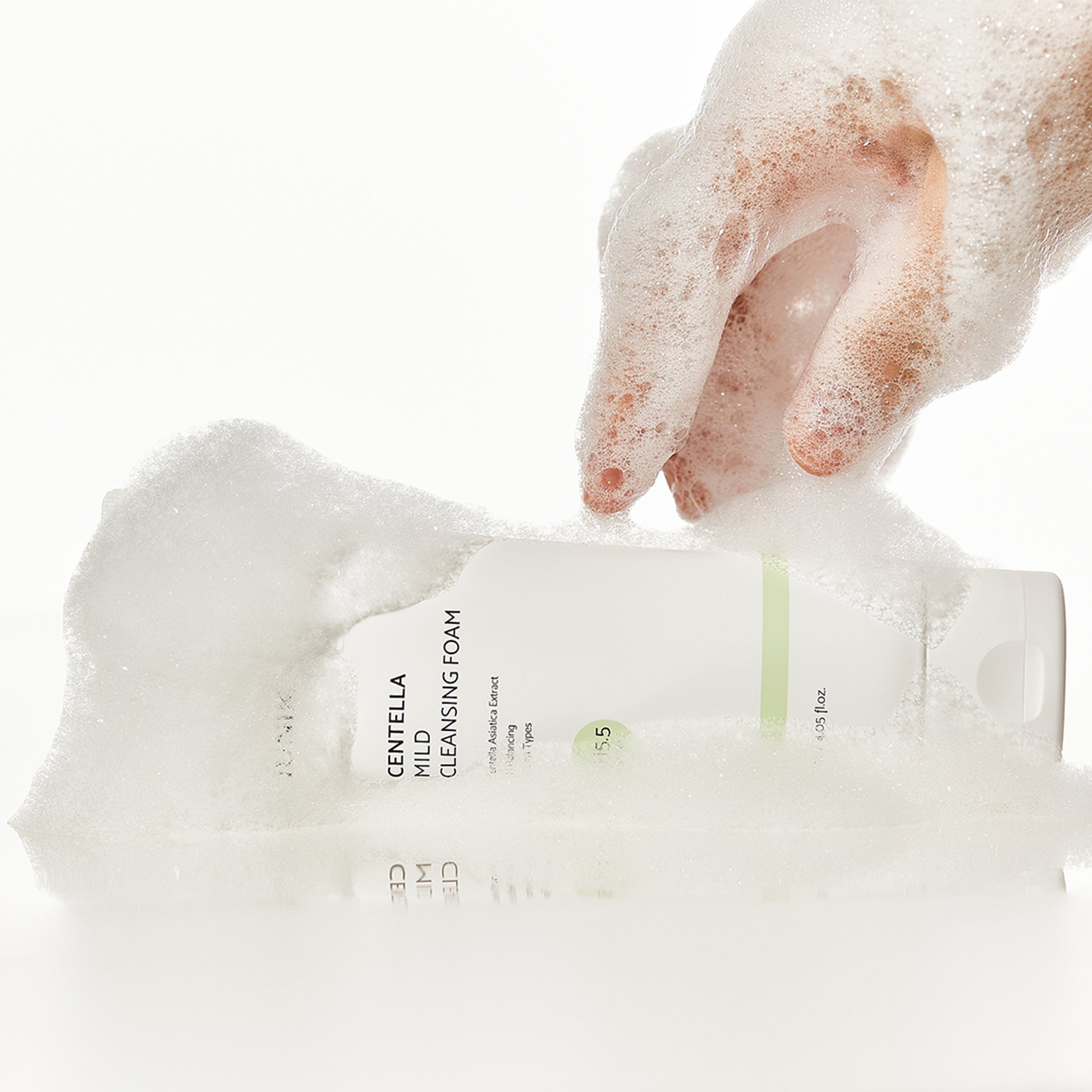 Dispense an appropriate amount of the Centella Green Fresh Cleansing Oil onto dry hands and gently massage over the face to melt away makeup and excess sebum. Add water to emulsify into a milky consistency, then rinse thoroughly with lukewarm water. Follow with the Centella Mild Cleansing Foam, lathering a small amount with water to form a rich foam. Massage onto the face and rinse well to remove impurities while keeping the skin soft and balanced.
